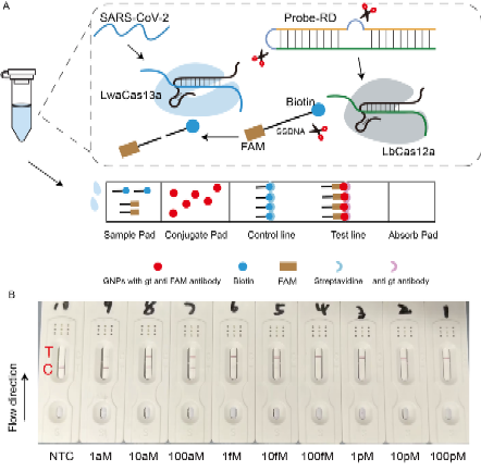 During the COVID-19 pandemic, home testing emerged as a rapid, convenient, and low-cost diagnostic approach, playing a crucial role in public health management. However, commercially available antigen test kits often suffer from insufficient sensitivity, leading to false-negative results. Although RT-PCR offers high sensitivity, it requires laboratory settings and is thus unsuitable for home use. The team led by Dr. Yizhen Liu developed a novel detection method combining a CRISPR cascade system with lateral flow immunochromatographic analysis. This method enables highly sensitive detection of SARS-CoV-2 without the need for nucleic acid amplification, effectively addressing the limitations of existing diagnostic techniques.