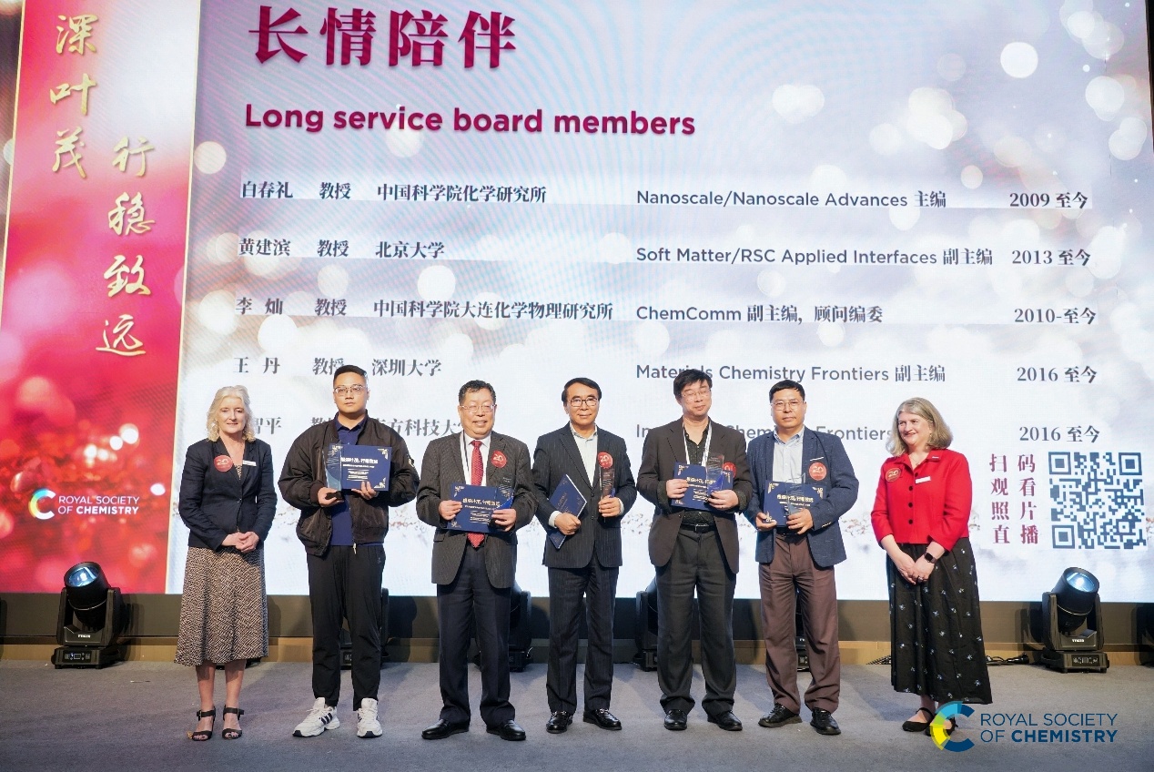 王丹教授荣获第二届中国化学会“利华益”化学创新奖。与此同时,因长期担任英国皇家化学会(Royal Society of Chemistry, RSC)旗下国际知名期刊 Materials Chemistry Frontiers(MCF)副主编,在推动期刊高质量发展、服务全球材料化学星光直播
